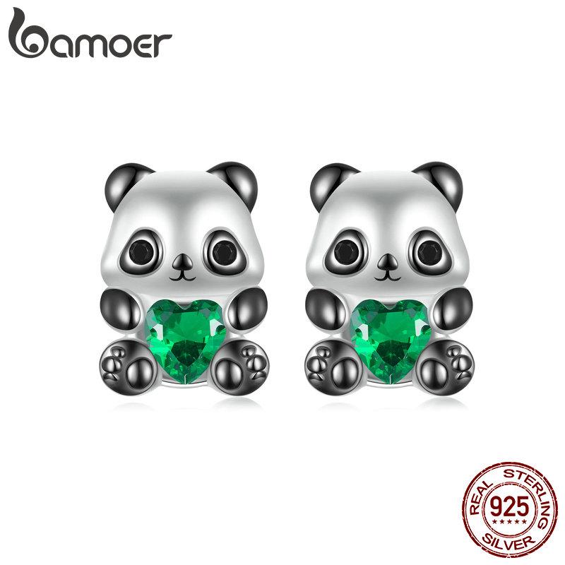BAMOER Solid 925 Sterling Silver Dainty Panda Stud Earrings - Гипоаллергенные минималистичные милые серьги-гвоздики в виде животных для женщин и девушек, ювелирные украшения