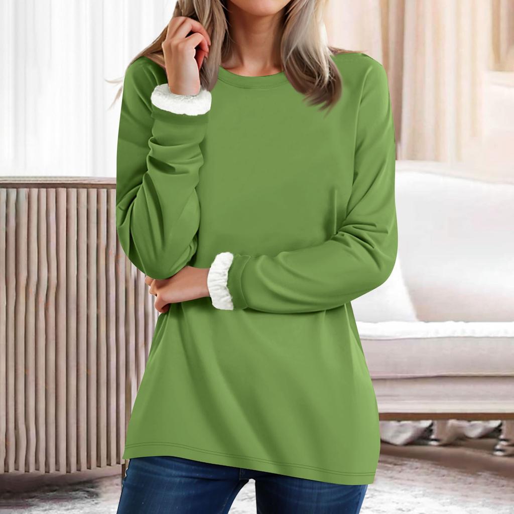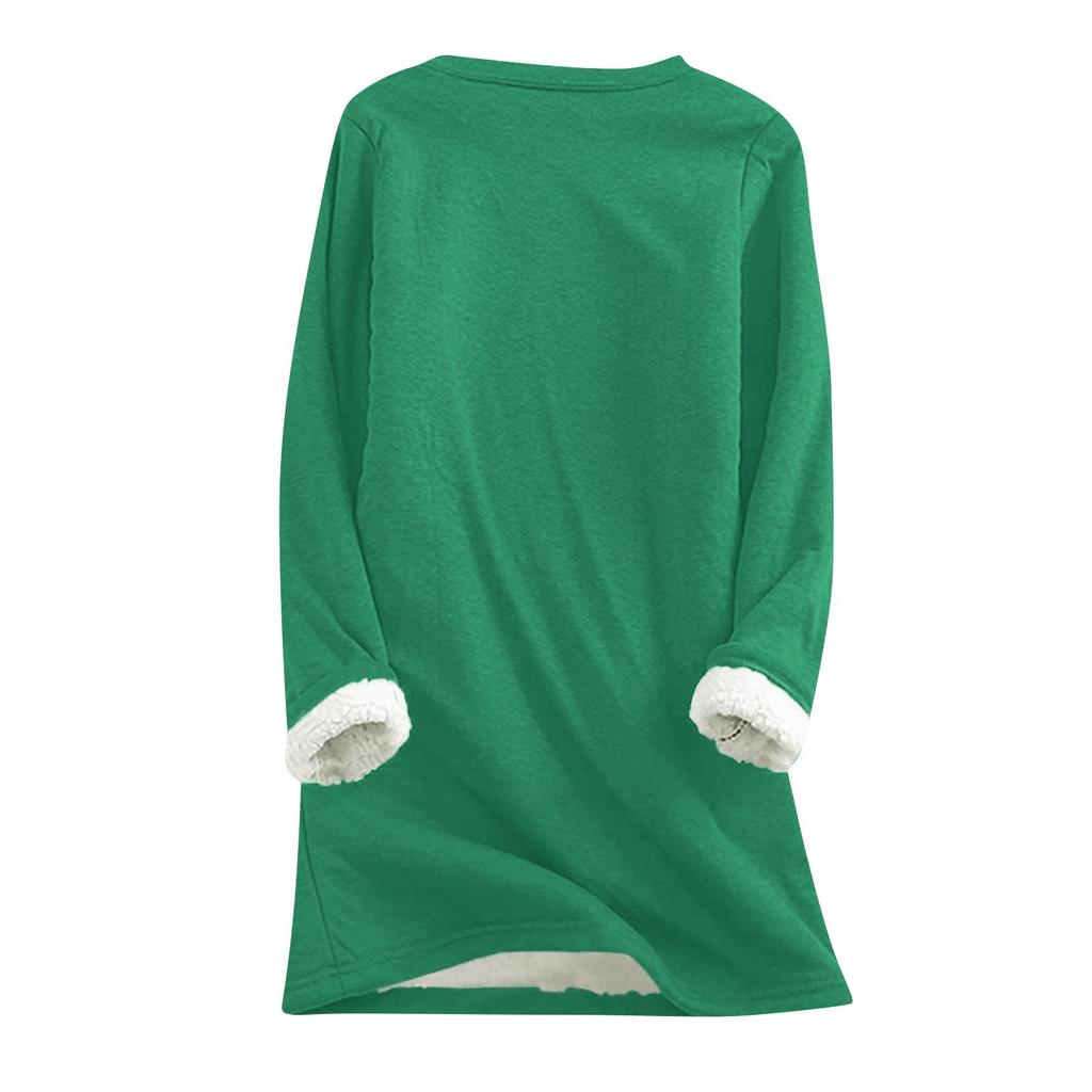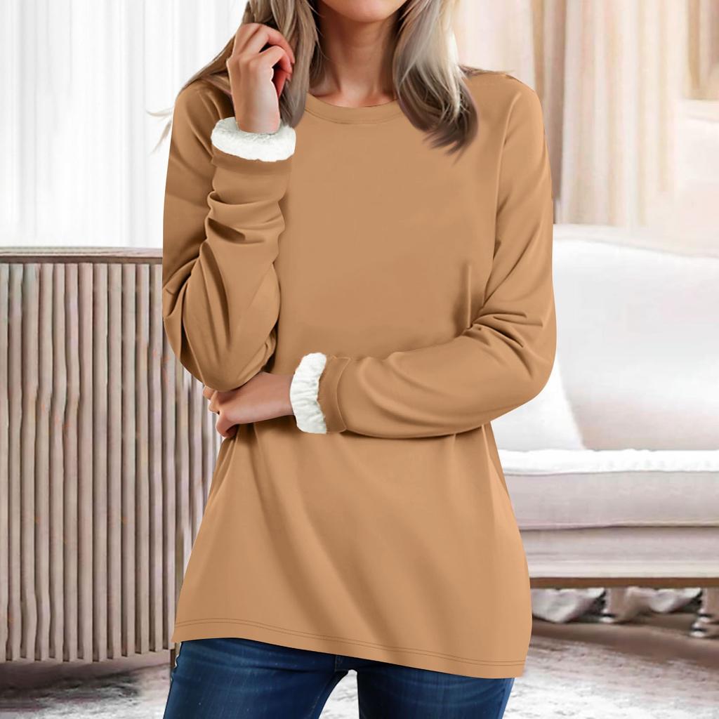 Женский топ с круглым вырезом, однотонный утепленный плюшевый кашемировый теплый длинный топ