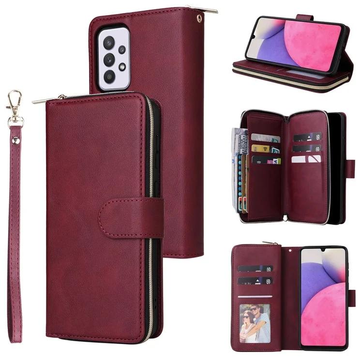 Для Samsung Galaxy A33 5G чехол-кошелек на молнии с отделениями для карт кожаный чехол для телефона