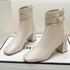Осень и зима Новые короткие женские ботинки с квадратным носком, короткие, больших размеров, на высоком каблуке, с флисовой подкладкой, универсальные ботильоны на толстом каблуке, короткие ботинки
