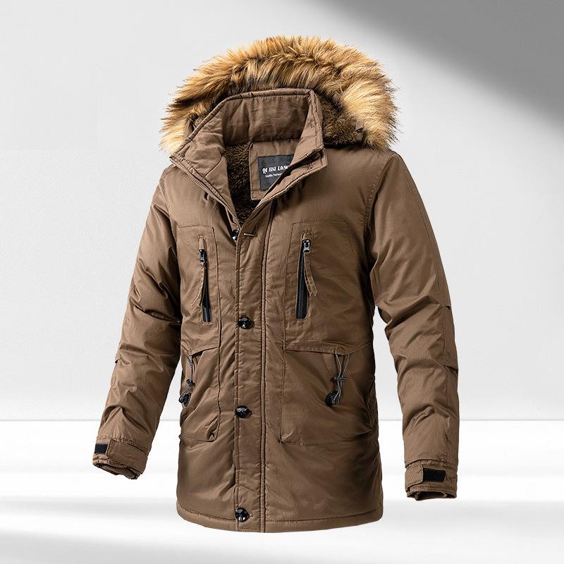 Комбинезон, пальто, зимнее мужское, плюс флис, утепленное с капюшоном, длинное пальто с хлопковой подкладкой, японское и южнокорейское пальто с хлопковой подкладкой для людей среднего и пожилого возраста