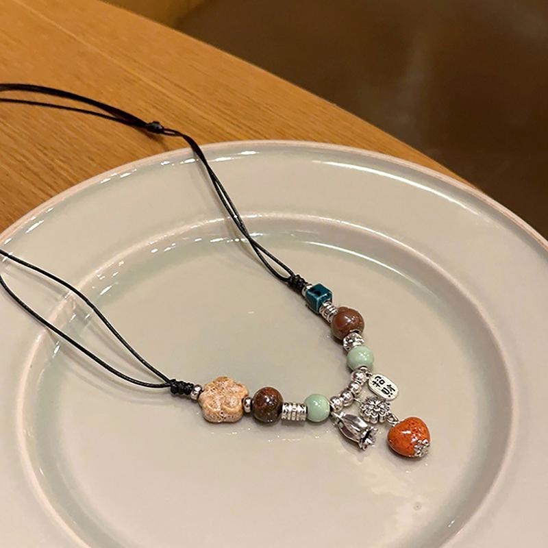 Винтажное керамическое ожерелье с подвеской в виде капли воды ручной работы для женщин и девочек, бусины из богемной керамики, колье в старинном стиле, ювелирное украшение в подарок