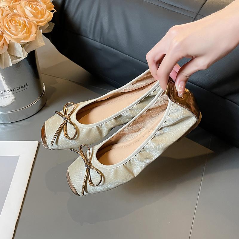 Женские повседневные туфли на плоской подошве с квадратным закрытым носком и бантом, удобные нарядные туфли на плоской подошве, мягкие балетки на плоской подошве для женщин, обувь для ходьбы