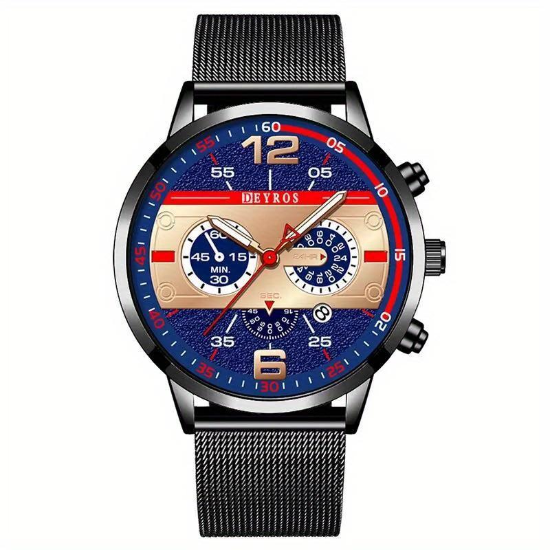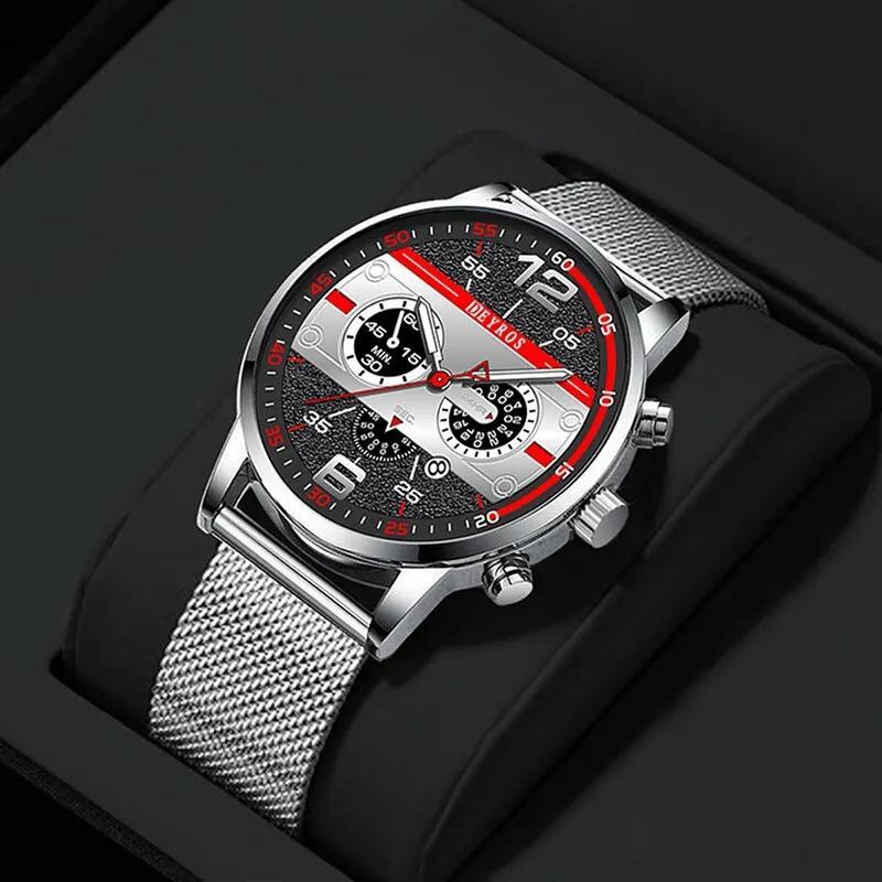 Роскошные модные мужские спортивные часы из нержавеющей стали с сетчатым ремешком, кварцевые часы для мужчин, деловые кожаные светящиеся часы