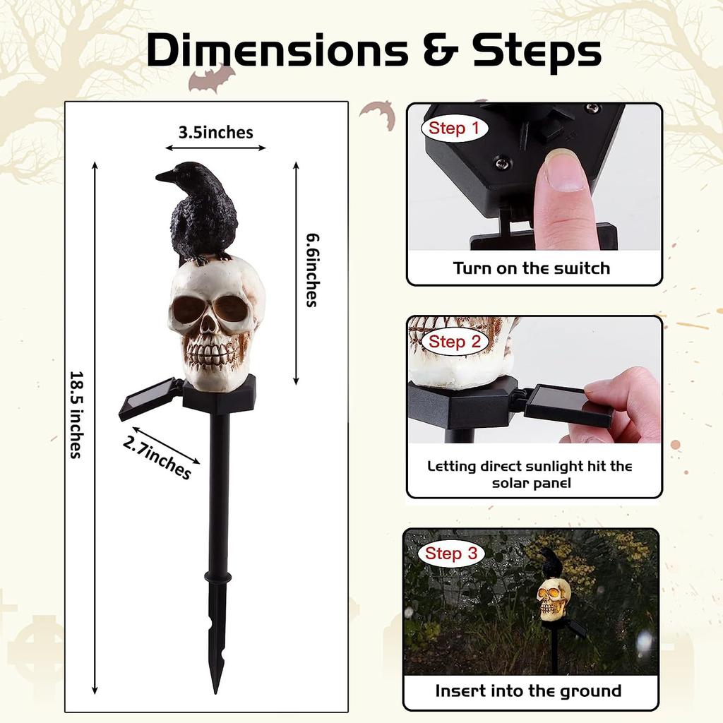 1. Солнечный садовый светильник изготовлен из прочного пластика и смолы, водонепроницаем, покрыт долговечной антикоррозийной краской. Каждый череп оснащен светодиодами теплого белого света, они выделяются именно так, как и должны, когда вы включаете свет.