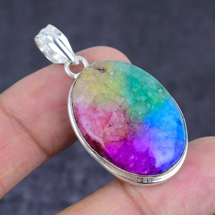 Подвеска из натурального радужного солнечного кварца из стерлингового серебра 925 пробы 1,85 дюйма
