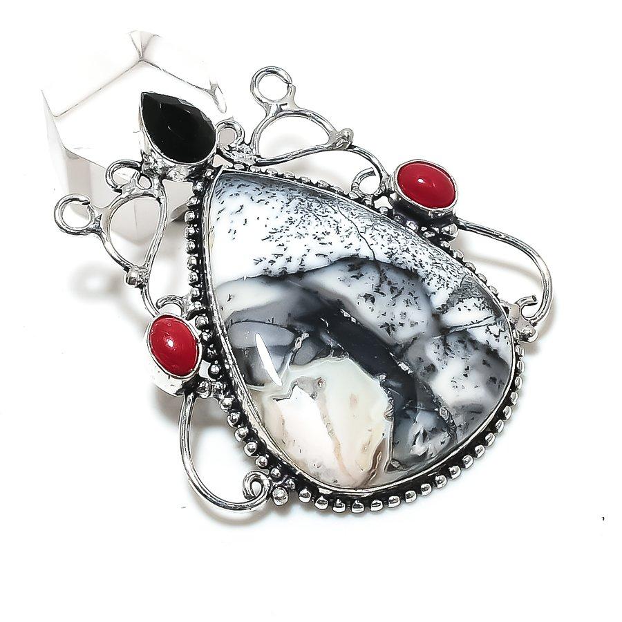 Подвеска из серебра 925 пробы с натуральным дендритовым опалом и шпинелью 2,29 дюйма