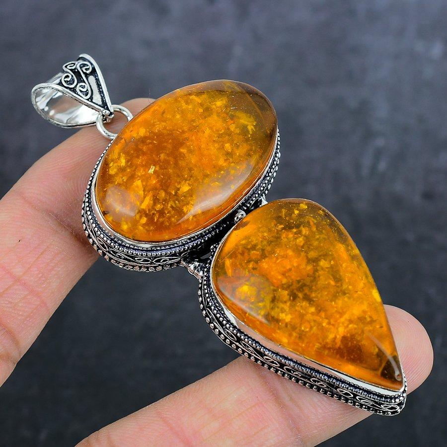 Ювелирная подвеска из серебра 925 пробы с натуральным балтийским янтарем 3,23 дюйма