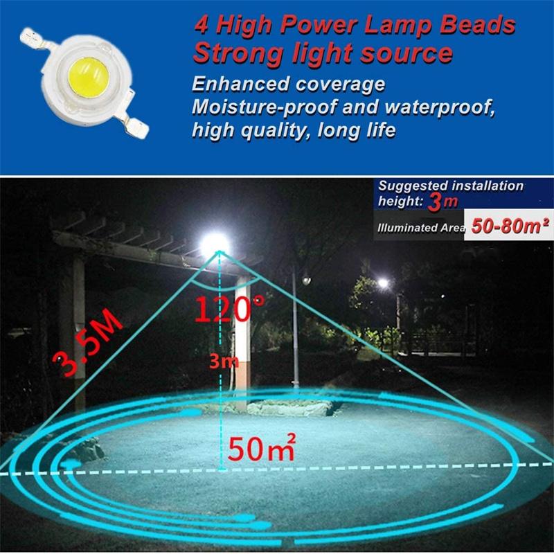 Уличные светильники на солнечных батареях:Датчик света для улицы с литий-ионным аккумулятором 3,7 В 1200 мАч преобразует солнечную энергию в электричество, экономя бюджет.. Коэффициент преобразования электроэнергии составляет около 23%, его можно быстро зарядить за 4–6 часов и работать всю ночь.