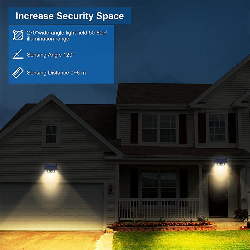 Регулируемые солнечные светильники движения на открытом воздухе:Прост в установке, имеет регулируемую опору для получения большего угла освещения и диапазона яркости в соответствии с потребностями.. Подходит для гаражей, домов, входных дверей, дворов, заборов, террас и т. д.