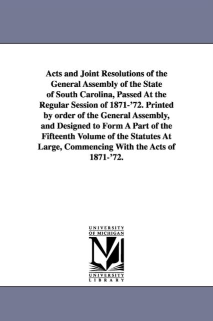 Книга Acts and Joint Resolutions of the General Assembly of the State of South Carolina Passed At the Regular Session of 1871-'72. Printed by Order of the