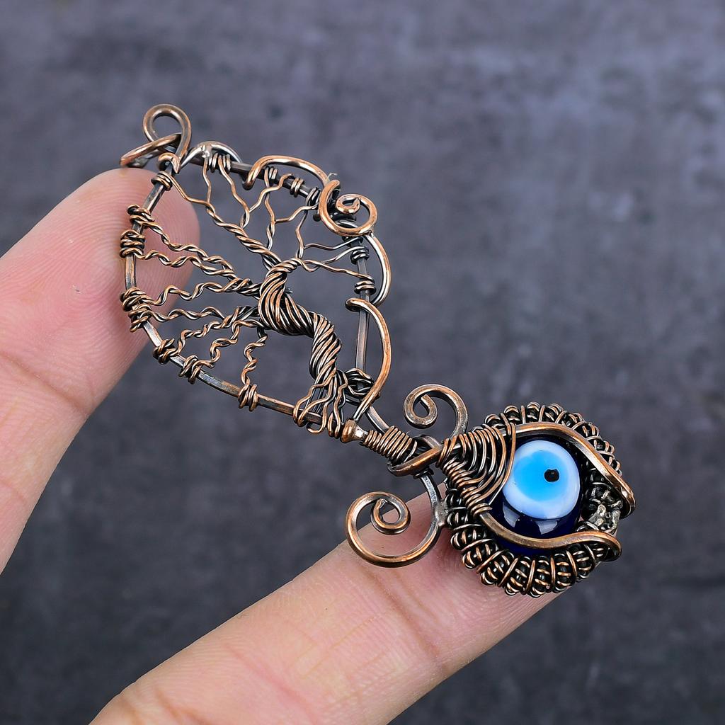 Подвеска из натурального синего драгоценного камня сглаза, медная проволока, 3,15 дюйма, w3Q85