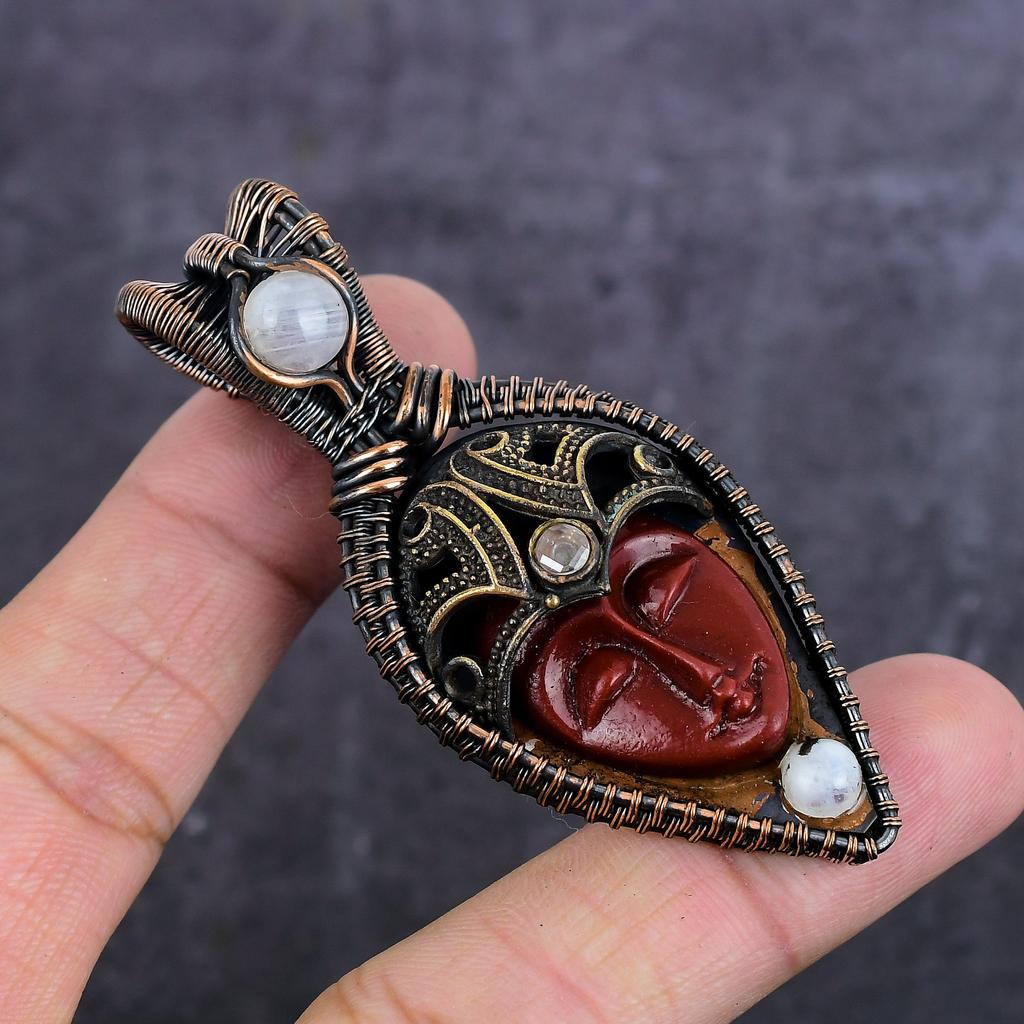 Натуральная камея, лунный камень, обмотка медной проволокой, ювелирная подвеска 2,99" c3M91