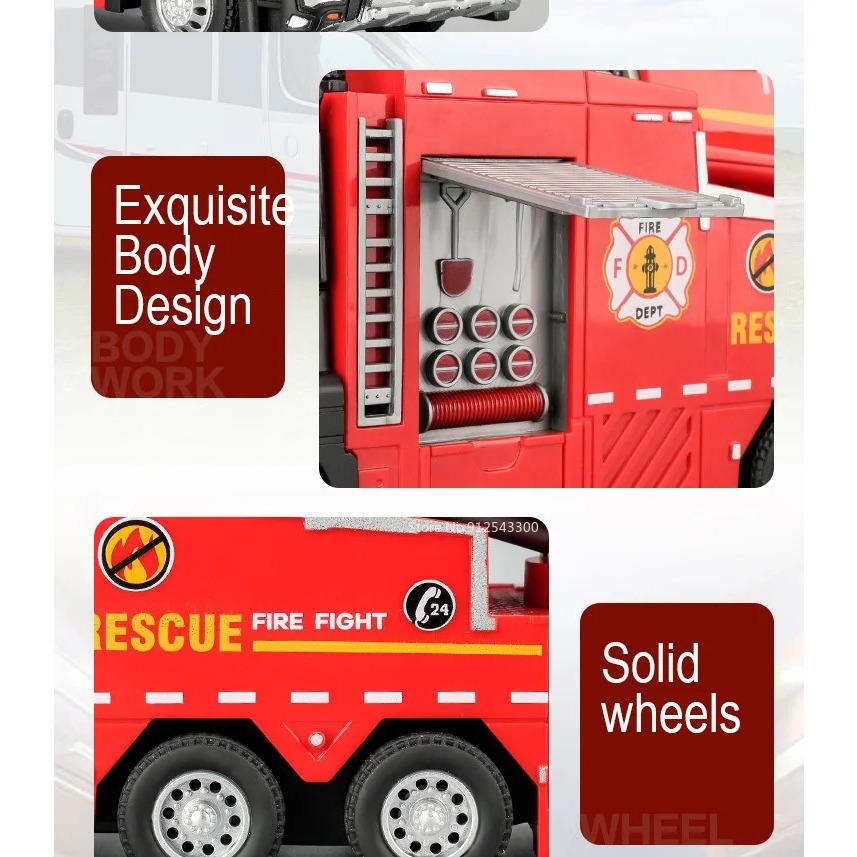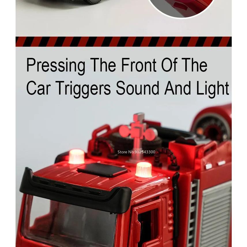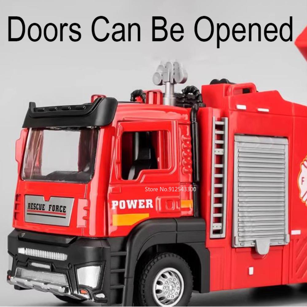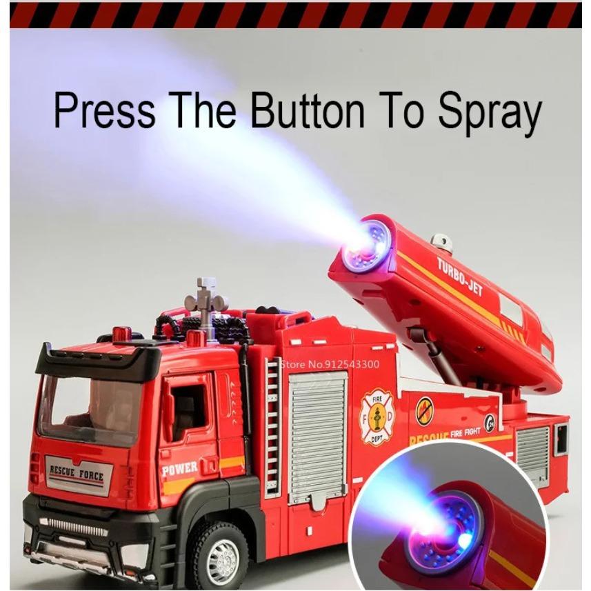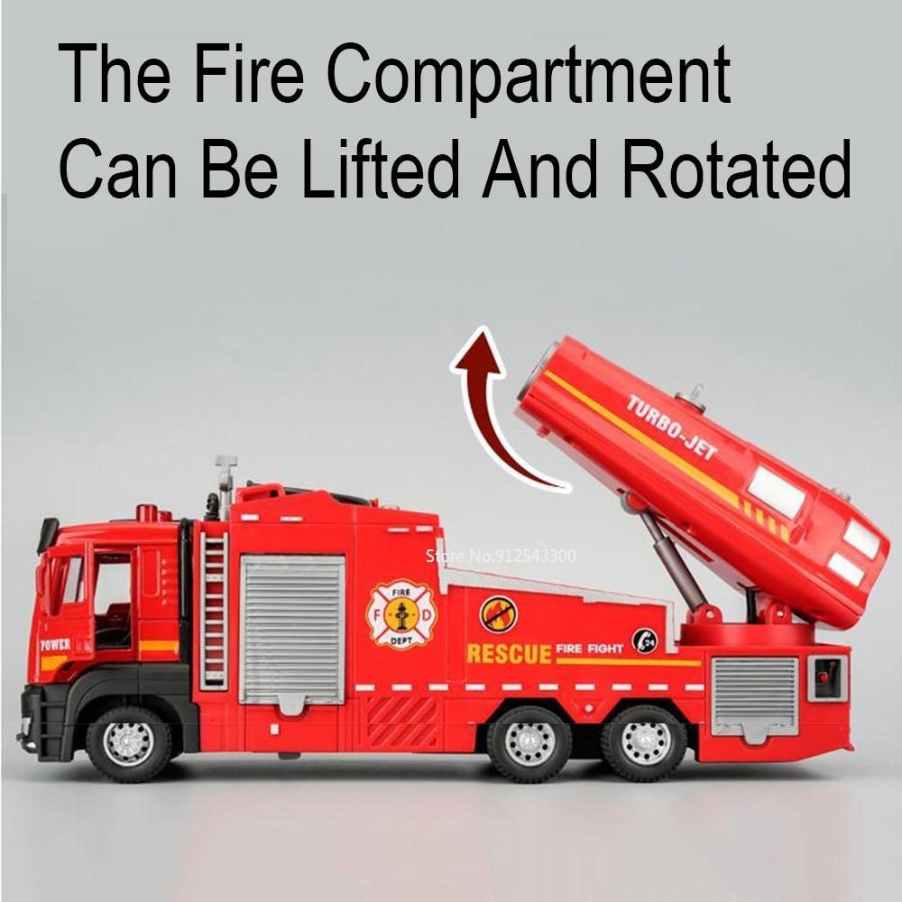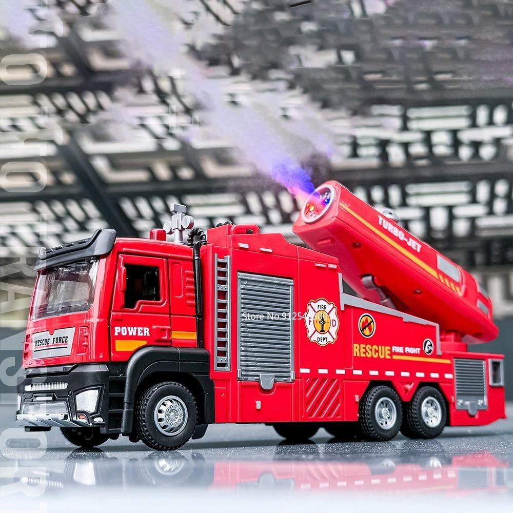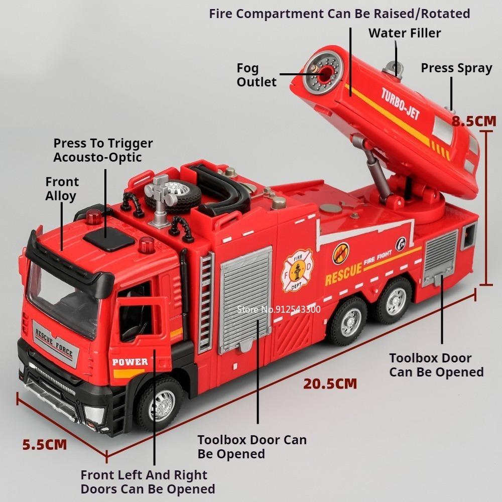 Масштаб 1/32 Пожарная машина Модель игрушечной машины Металлическая литая под давлением Светомузыкальная имитация Спрей Спасательная машина Модели для детей Подарки на день рождения