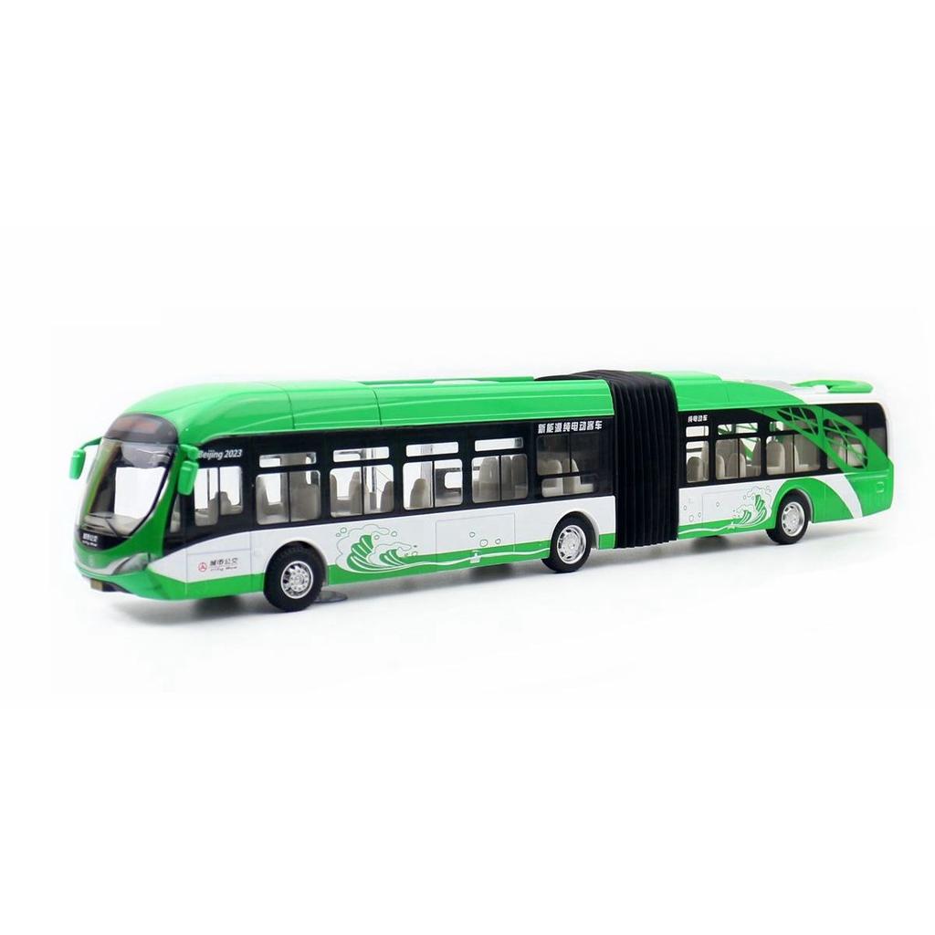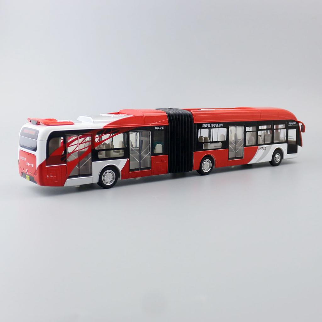 1/32 Сочлененный двухсекционный игрушечный автобус литой модели автобуса с откидными дверями, открывающимися со звуком и светом, коллекция подарков для детей и мальчиков