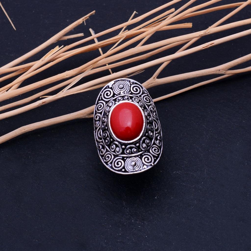 Кольцо из серебра 925 пробы с натуральным красным кораллом, размер 7,25 v5f34