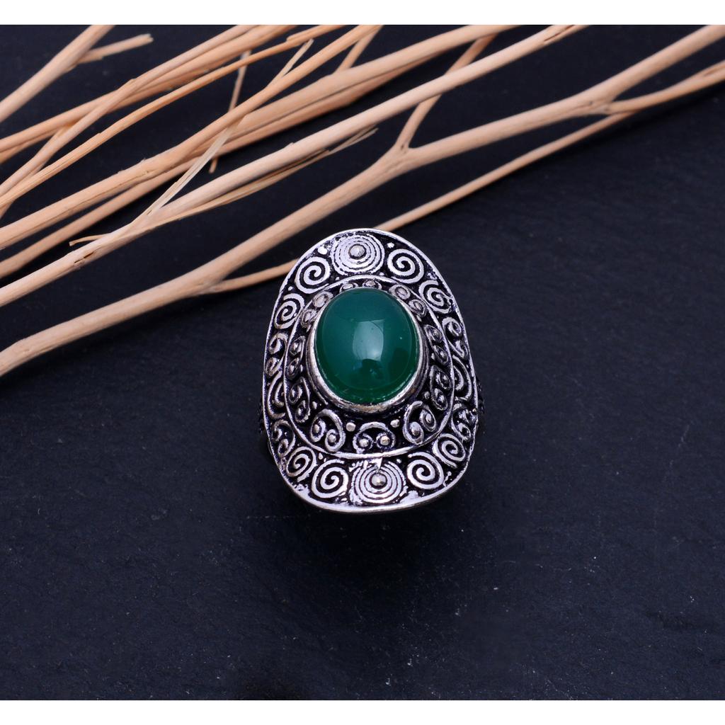 Натуральный зеленый оникс драгоценный камень ручной работы серебро 925 пробы кольцо размер 10.25 J2Q73