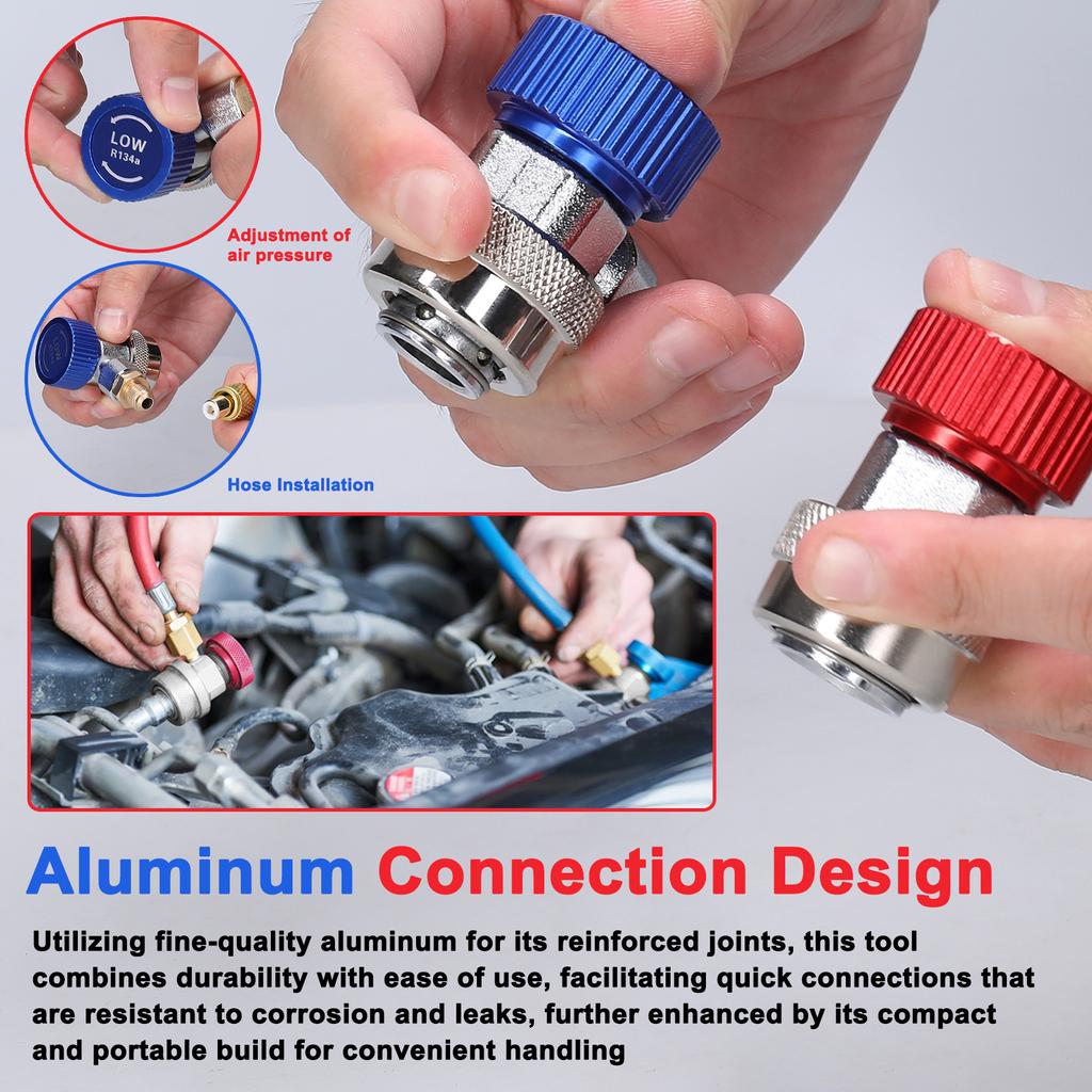 Конструкция алюминиевого соединения: Благодаря использованию высококачественного алюминия для усиленных соединений этот инструмент сочетает в себе долговечность и простоту использования, обеспечивая быстрые соединения, устойчивые к коррозии и утечкам, а его компактная и портативная конструкция обеспечивает удобство использования.
