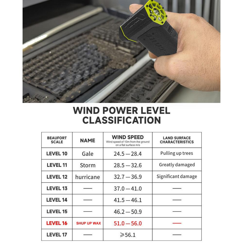 Исключительно сильный ветер и рассеивание тепла: Стабильная работа и идеальный эффект удаления пыли.. Внутренний бесщеточный двигатель способен генерировать впечатляющую скорость ветра 130 000 об/мин, достигая скорости ветра 62 мс.. Вентилятор