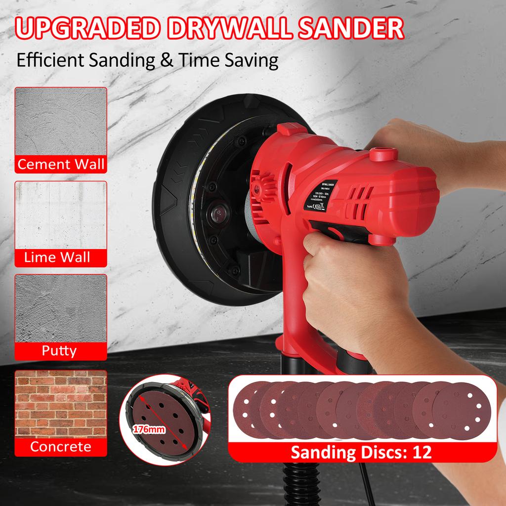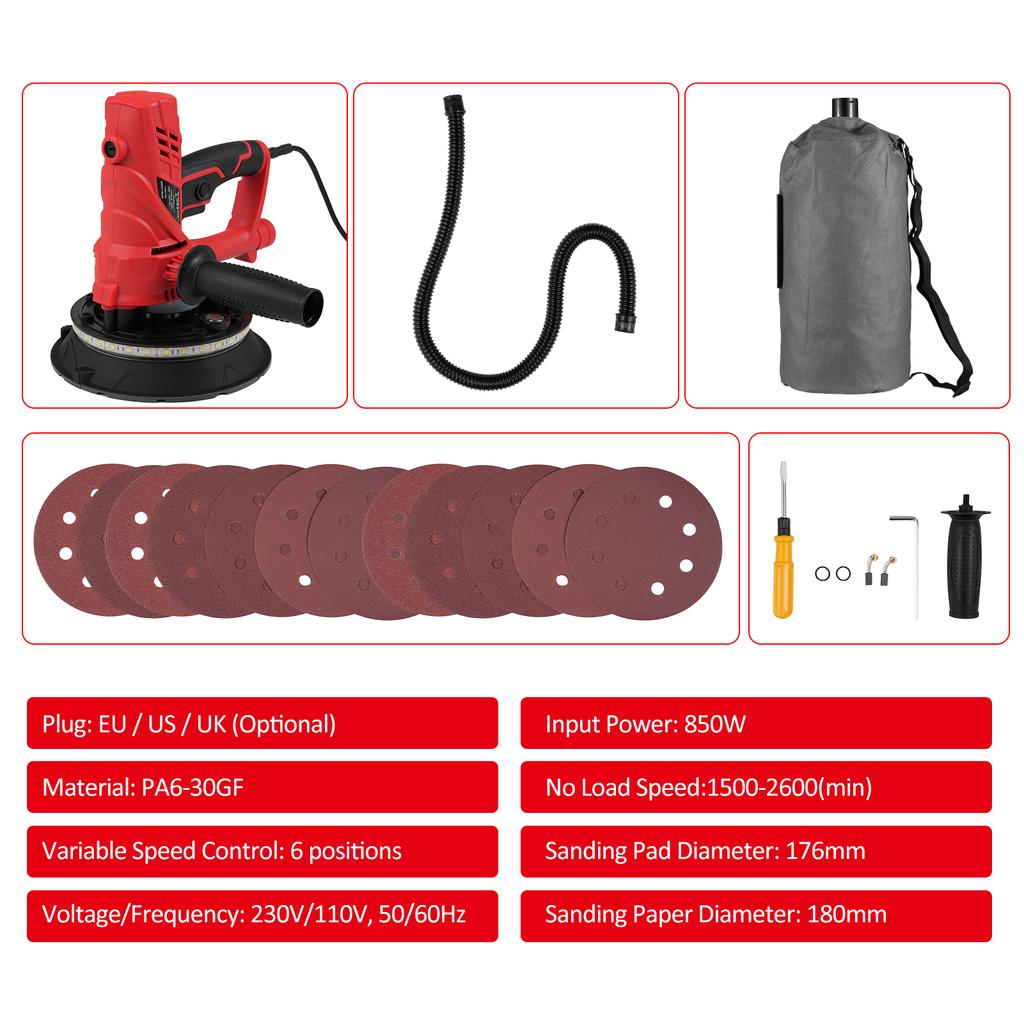 Ручная шлифовальная машина для гипсокартона 850 Вт электрическая шлифовальная машина с 12 шлифовальными дисками, переменная скорость 1500-2600 об/мин