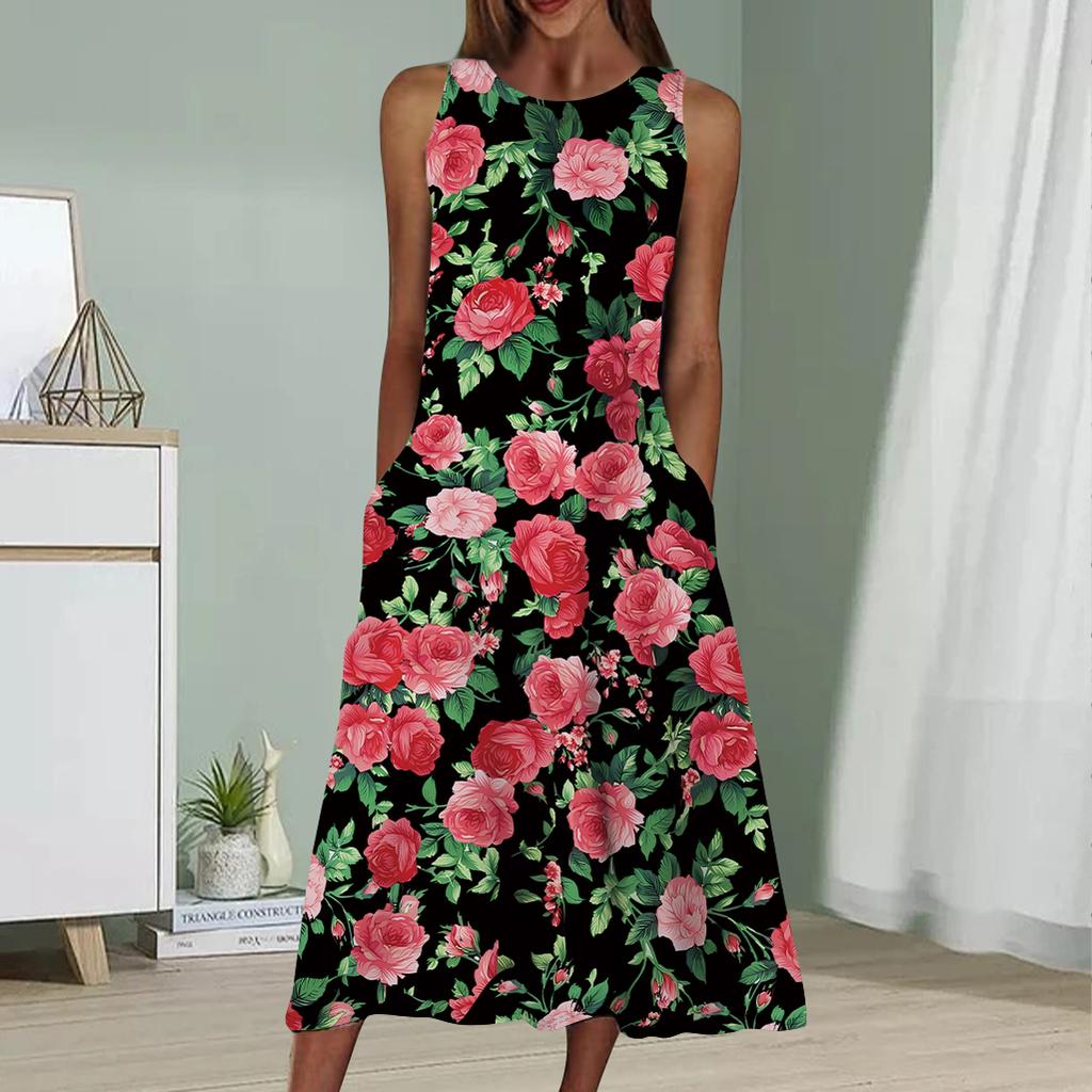 Летнее модное сексуальное платье без рукавов Мягкое повседневное платье с принтом 3D Rose Garden Платье без рукавов на бретельках