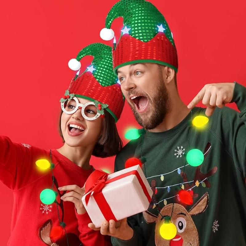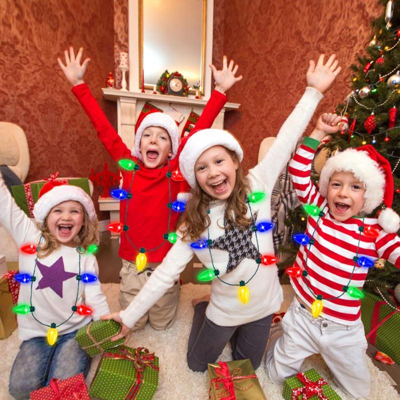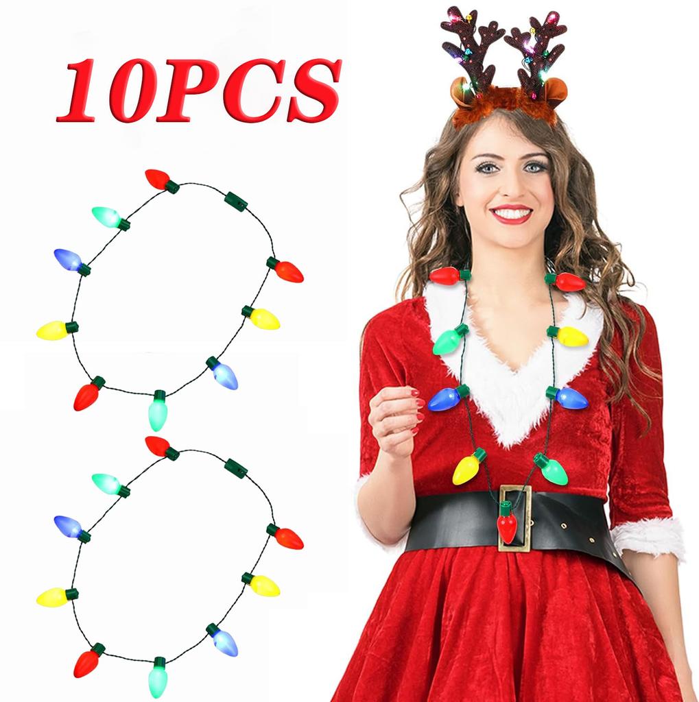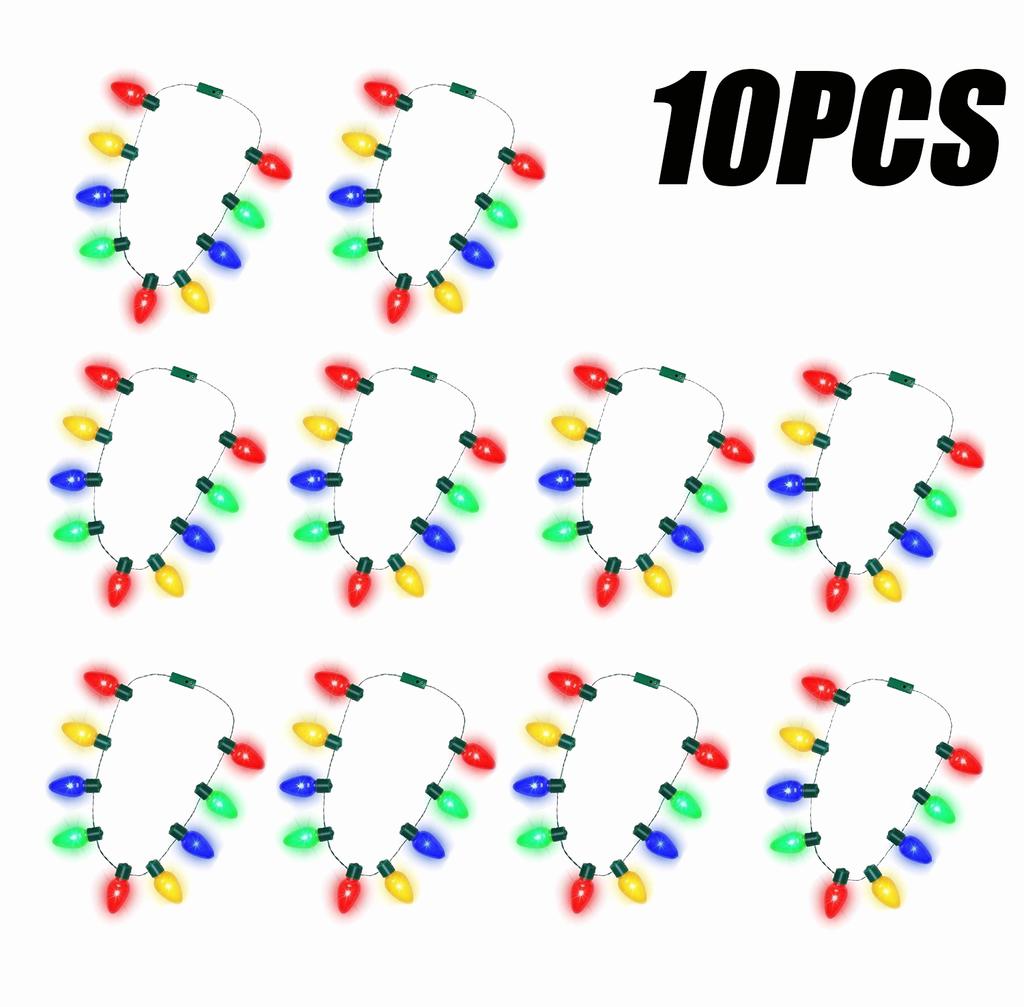 10 шт., праздничное светящееся ожерелье, 9 светодиодных лампочек, рождественское ожерелье с лампочками, сувениры для вечеринок, ожерелье со вспышкой, светящийся в темноте реквизит