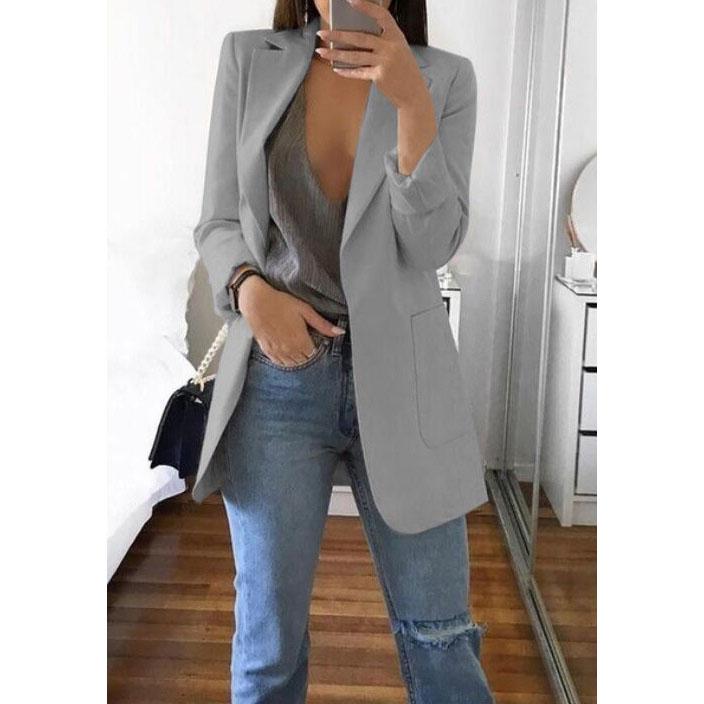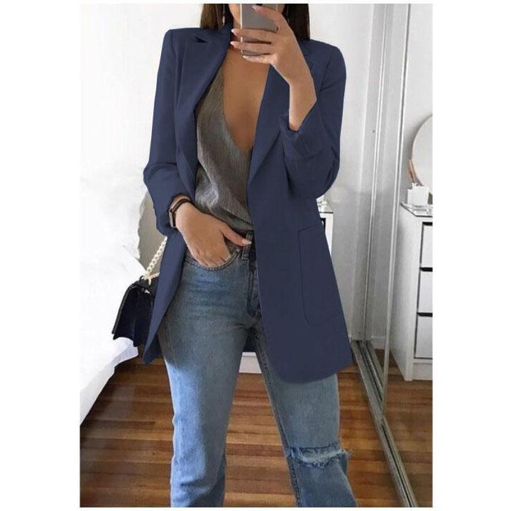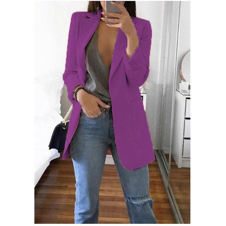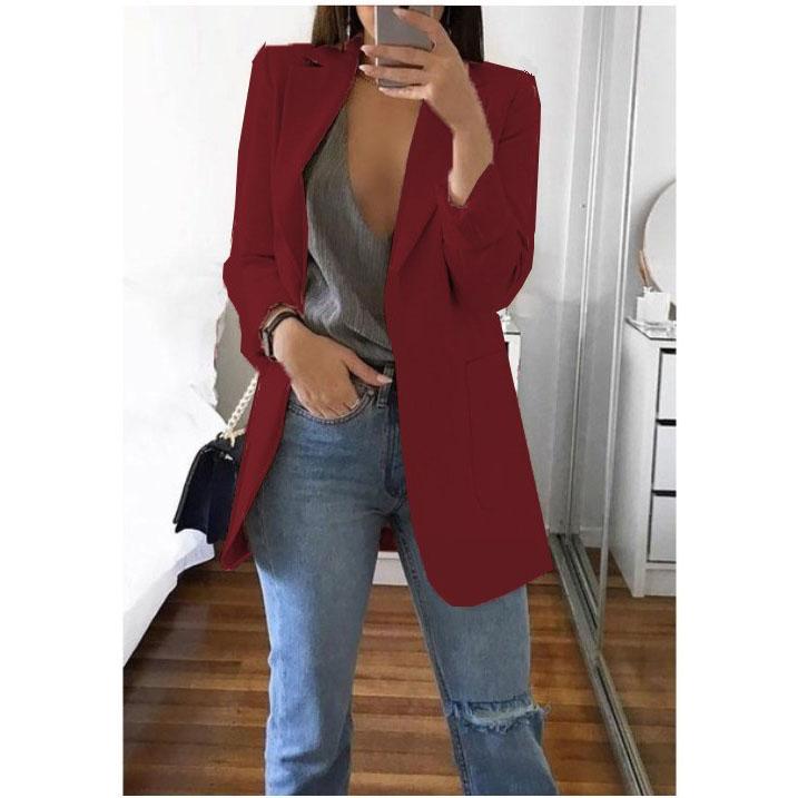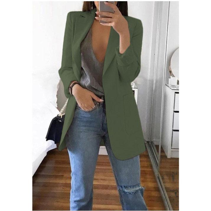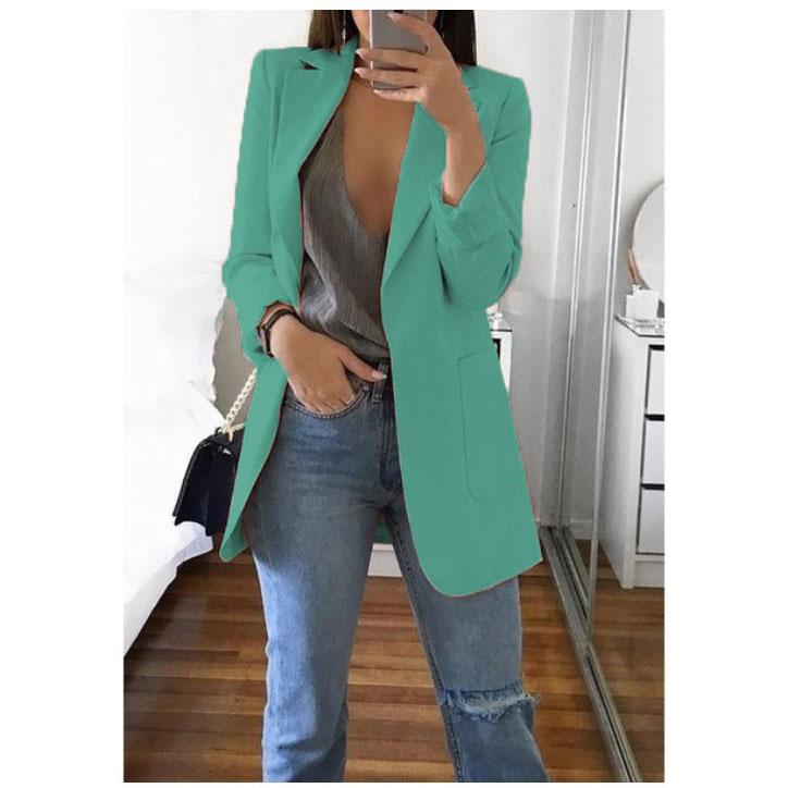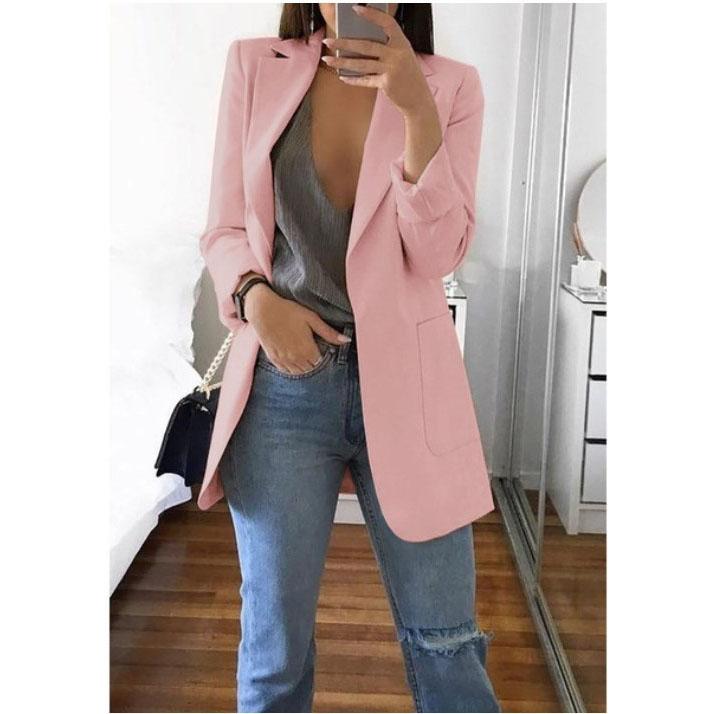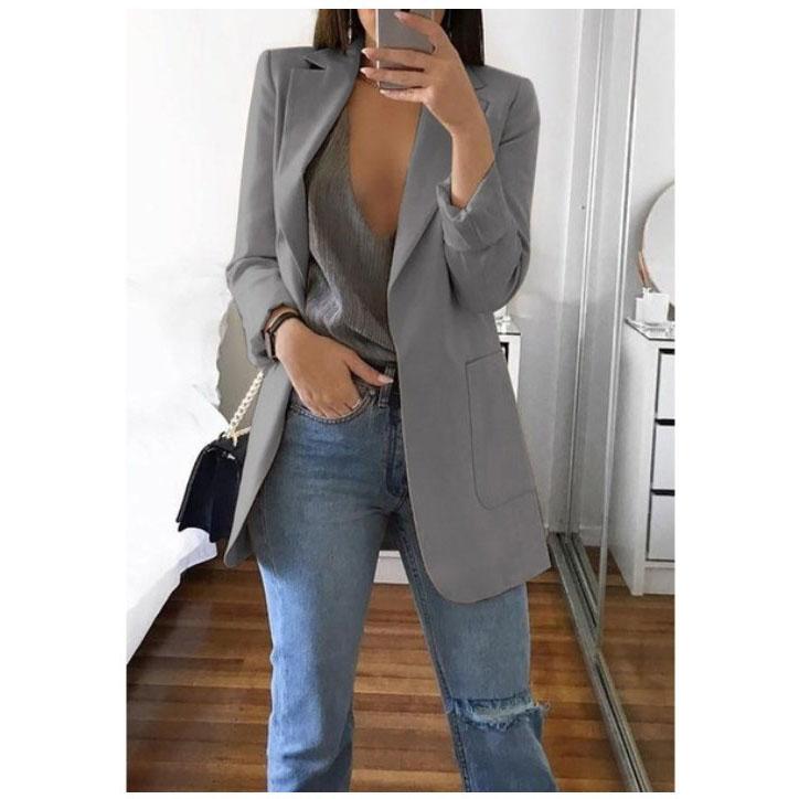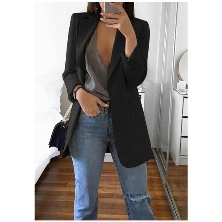 Осенняя мода больших размеров S-5XL с длинным рукавом и открытым передом, однотонные офисные женские однотонные блейзеры, женские повседневные свободные длинные блейзеры, кардиганы, куртки, пальто
