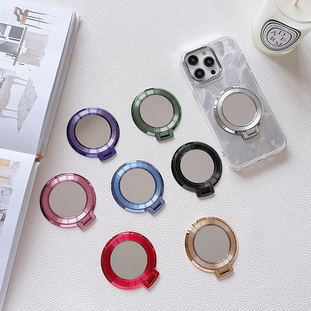 Магнитный держатель для мобильного телефона с гальваническим покрытием цвета конфет, складной, с защитой от падения, с металлическим кольцом, пряжкой, липкой наклейкой на заднюю панель, зеркальцем для макияжа
