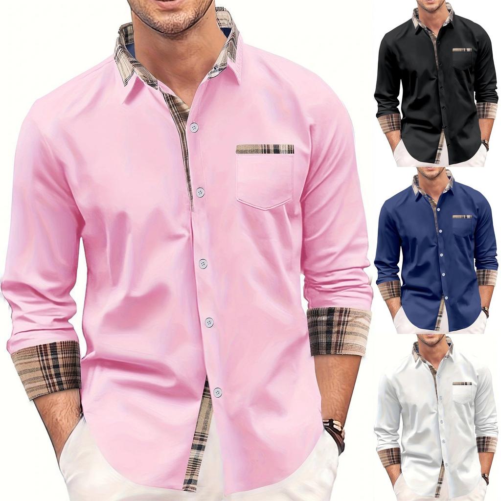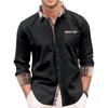 Мужская осенняя рубашка свободного покроя с длинным рукавом в клетку с цветными блоками на пуговицах