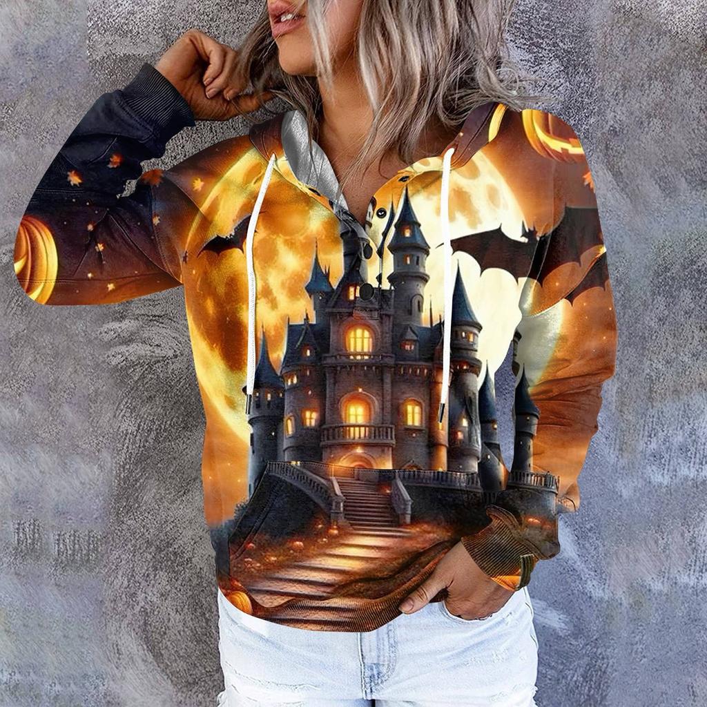 Женские повседневные модные пуловеры с длинными рукавами и принтом, толстовки с капюшоном