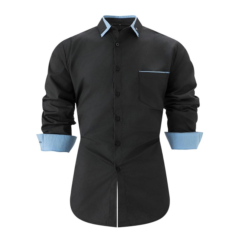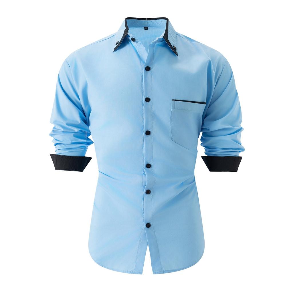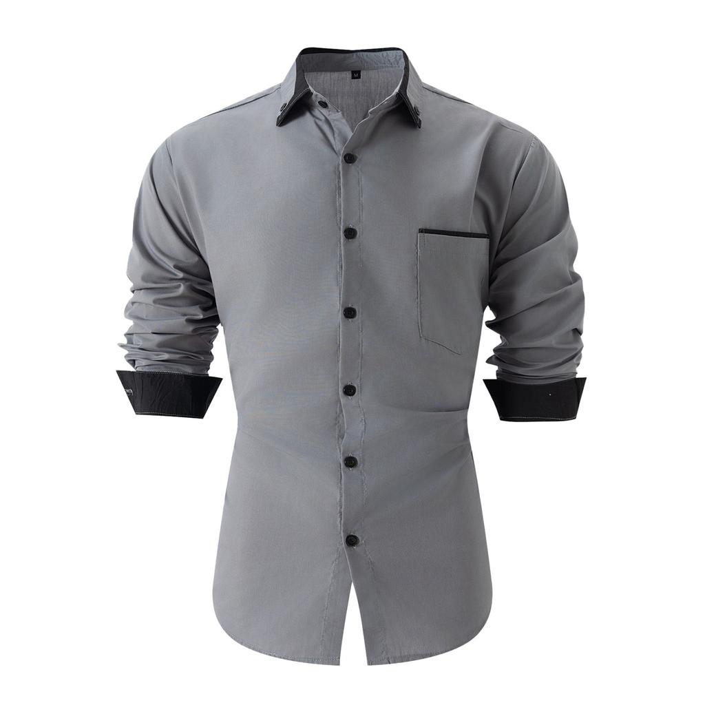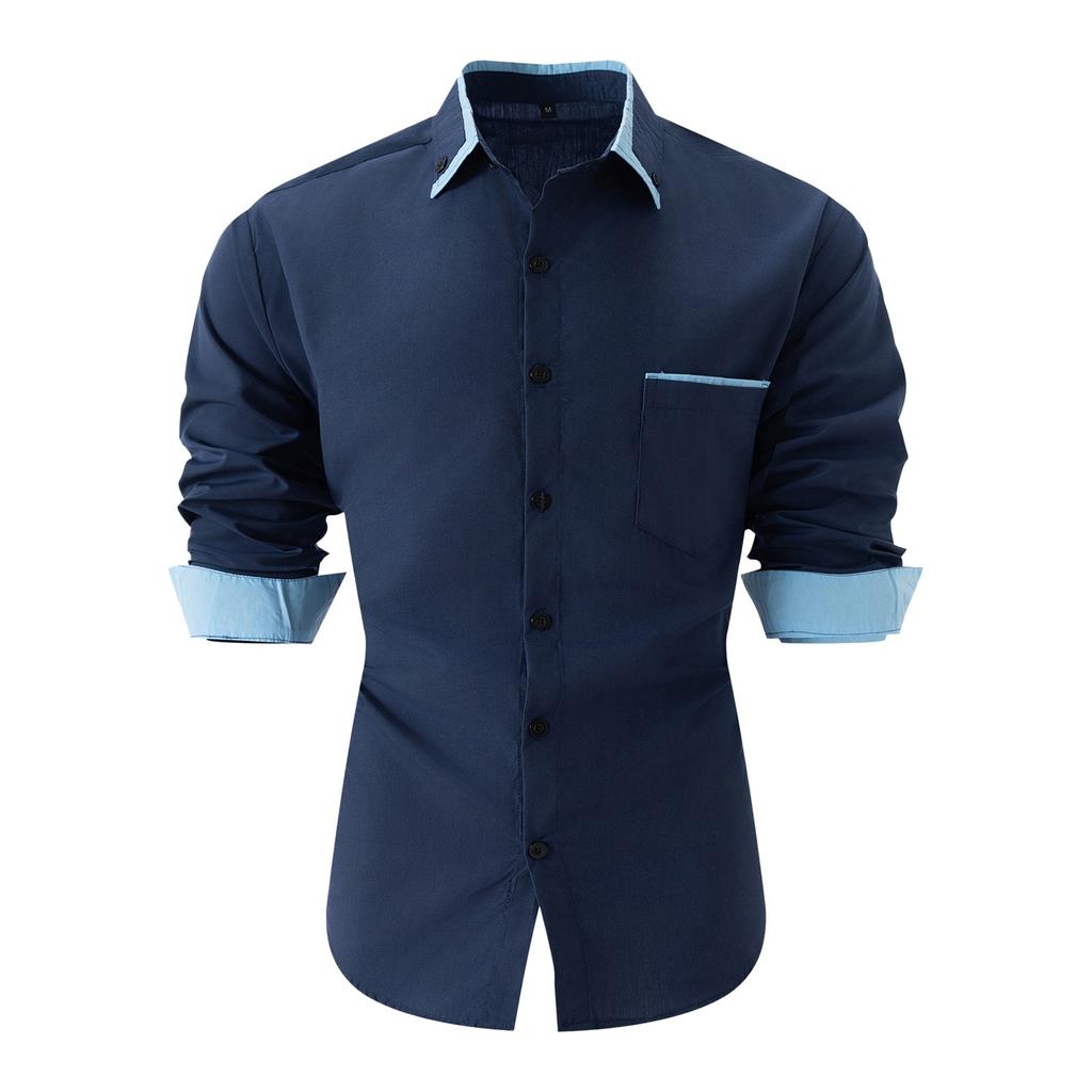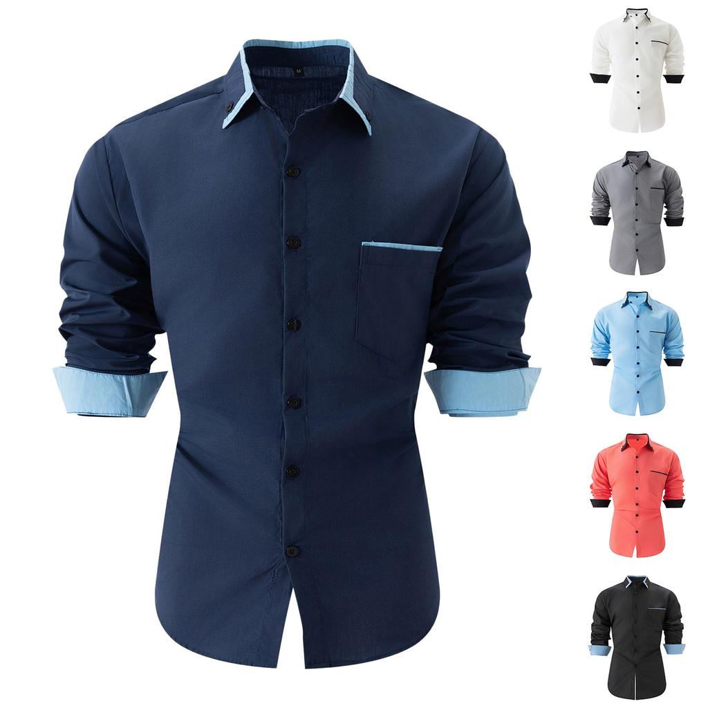 Мужская осенняя повседневная свободная рубашка с цветными блоками и длинным рукавом