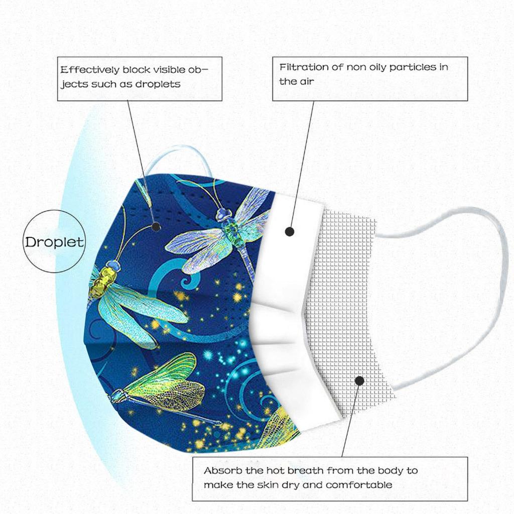 50 шт. 3-слойная одноразовая маска для лица с принтом для взрослых