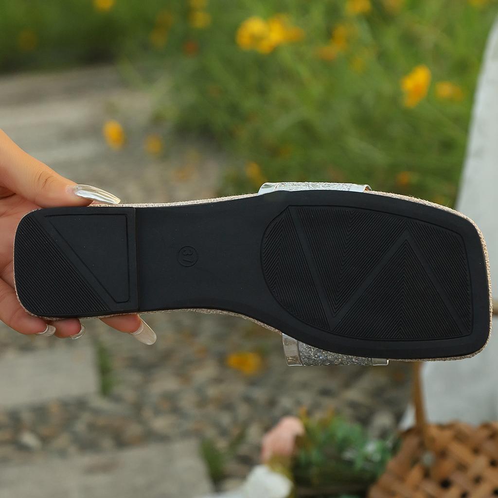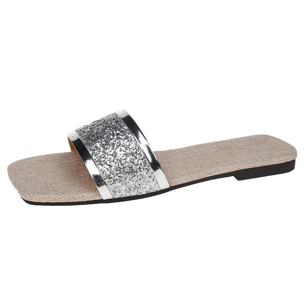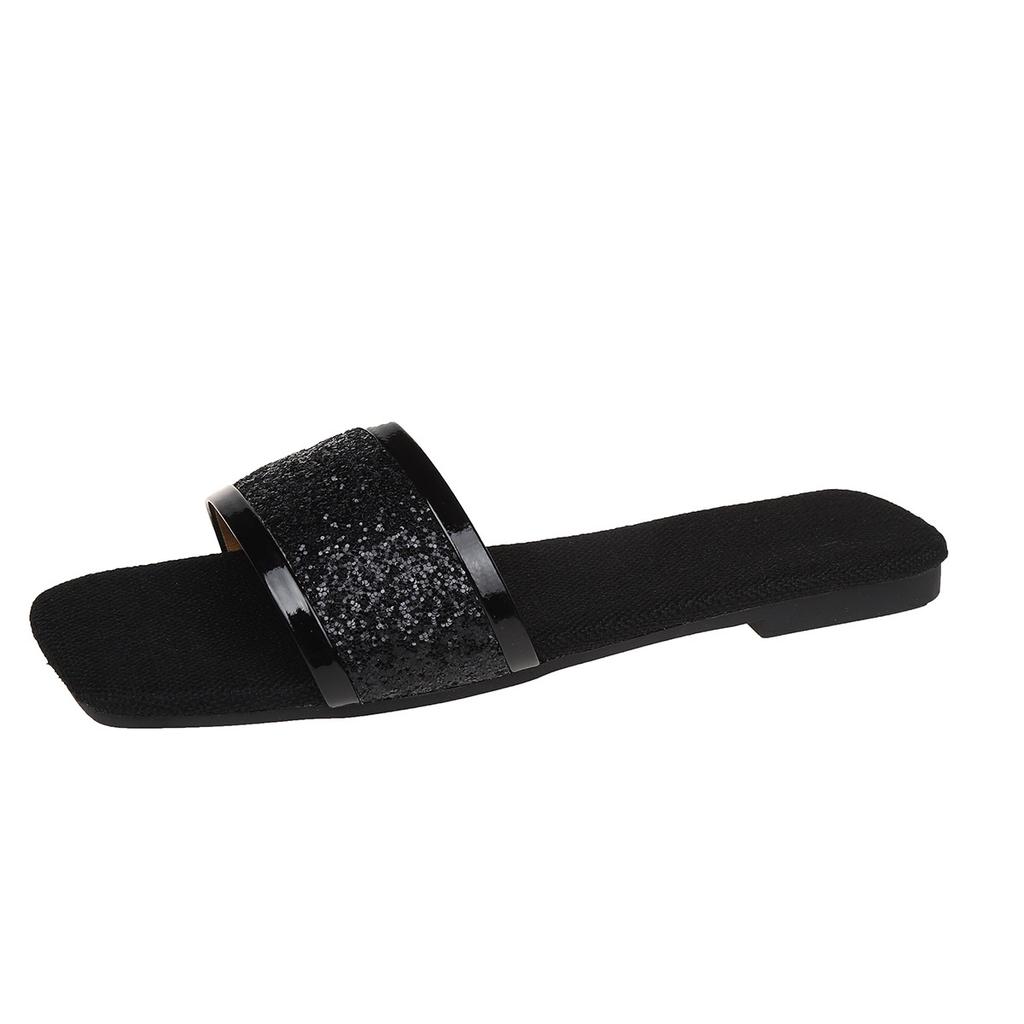 Большие размеры, новые однотонные сандалии с блестками, женская летняя верхняя одежда, модные пляжные женские сандалии и тапочки с квадратным носком и открытым носком на плоской подошве