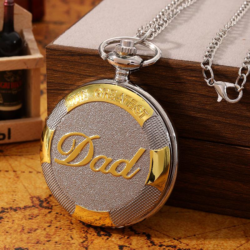 2 шт./компл., 1 шт. модные мужские серебристо-золотые кварцевые карманные часы «папа» и 1 шт. серебристое винтажное ожерелье, идеальный выбор для подарка на день отца