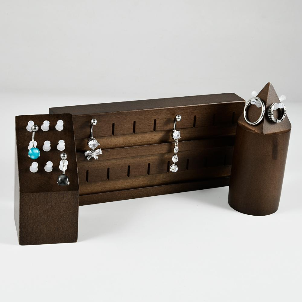 1 шт. деревянная витрина для пирсинга, футляры в форме цветка и сердца, подставка для сережек, пирсинга живота, губ, языка, ювелирных изделий из цельного дерева