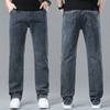 Мужские весенние тонкие джинсы свободного прямого кроя с высокой талией, повседневные брюки из эластичного денима для мужчин