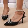 Модные женские туфли на высоком каблуке со стразами, сексуальные черные туфли с бантом и острым носком, туфли на шпильках для вечеринок, модные туфли без застежек для женщин, свадебные туфли