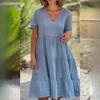 GMXIA Женская мода, лето, весна, свежие и милые однотонные принты, с коротким рукавом, v-образным вырезом, большие свободные повседневные платья