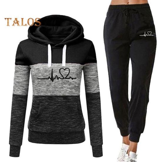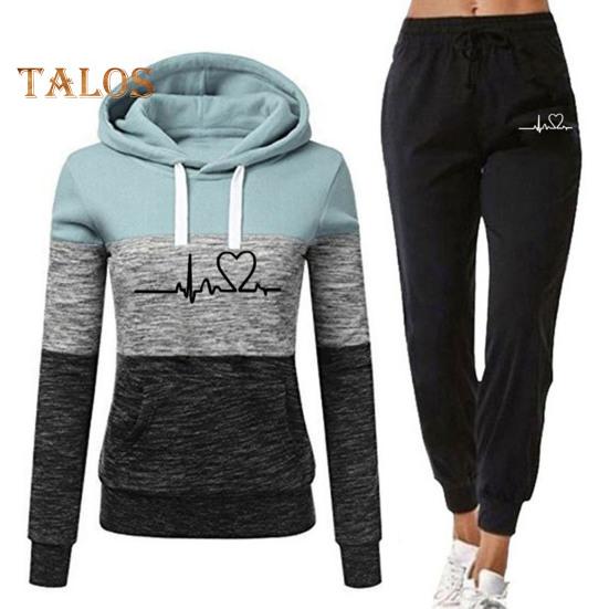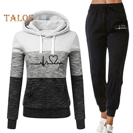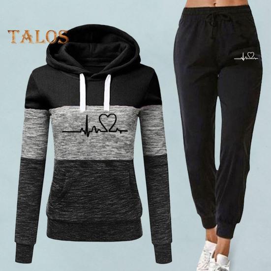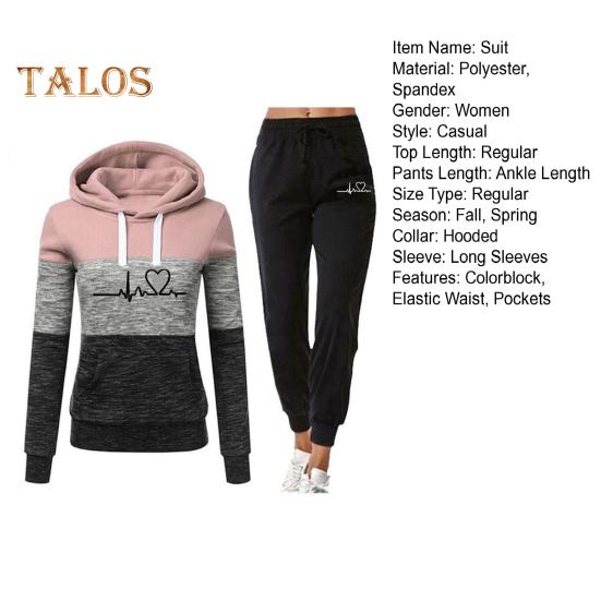 Этот женский спортивный костюм станет обязательным дополнением к вашему гардеробу.. Изготовленная из 95% полиэстера и 5% спандекса, эта высококачественная ткань дышит, не мнется и долговечна.. Толстовка с длинными рукавами и принтом в виде сердец в сочетании с спортивными штанами с цветными блоками создает повседневный и модный образ.. Свободный крой подчеркивает вашу фигуру и обеспечивает максимальный комфорт..