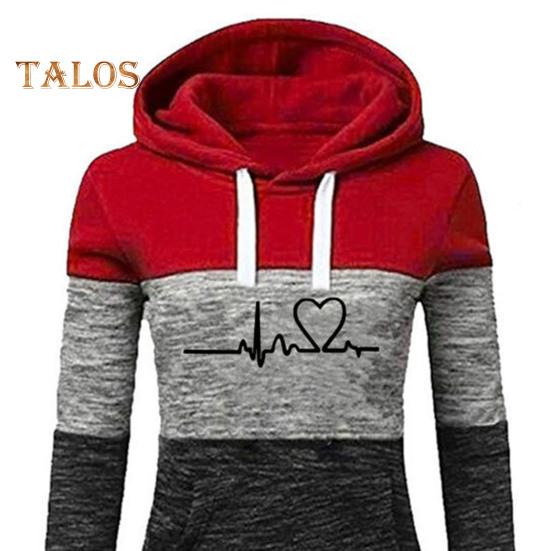 Стильный дизайн принта «Сердце»: Выделитесь с помощью топа с длинными рукавами и принтом в виде сердец в сочетании с спортивными штанами с капюшоном в цветных блоках, создав модный и стильный ансамбль, который идеально подойдет для разных случаев.