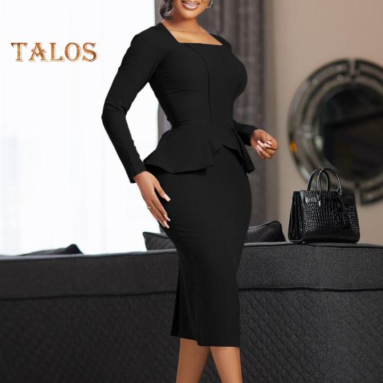 Женское деловое платье с квадратным вырезом и длинным рукавом, однотонное, с оборками, в стиле пэчворк, облегающее, OL, формальное платье миди для поездок на работу — купить товар онлайн с бесплатной доставкой по всему миру!