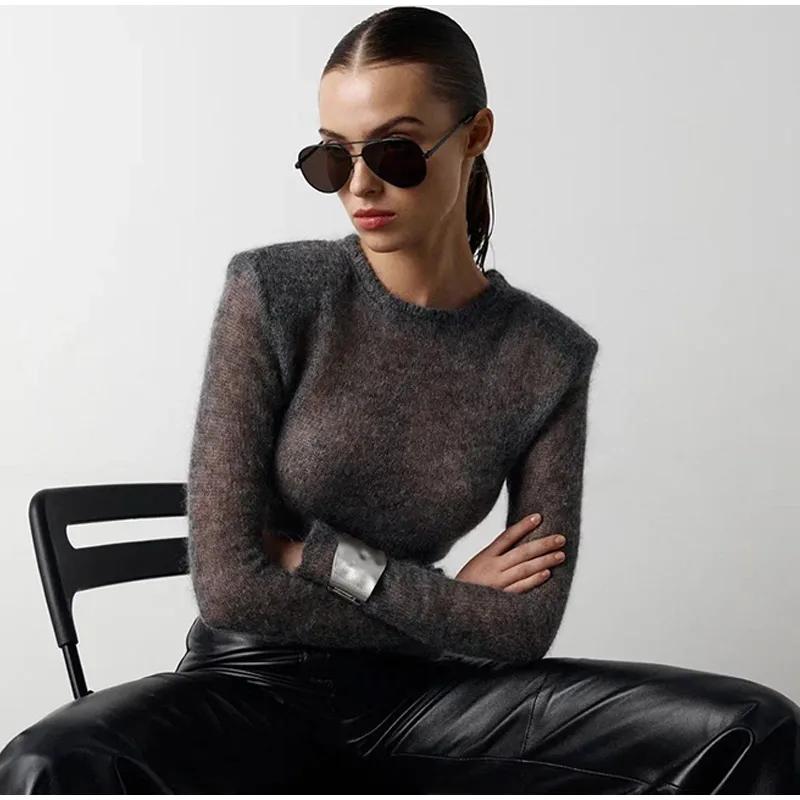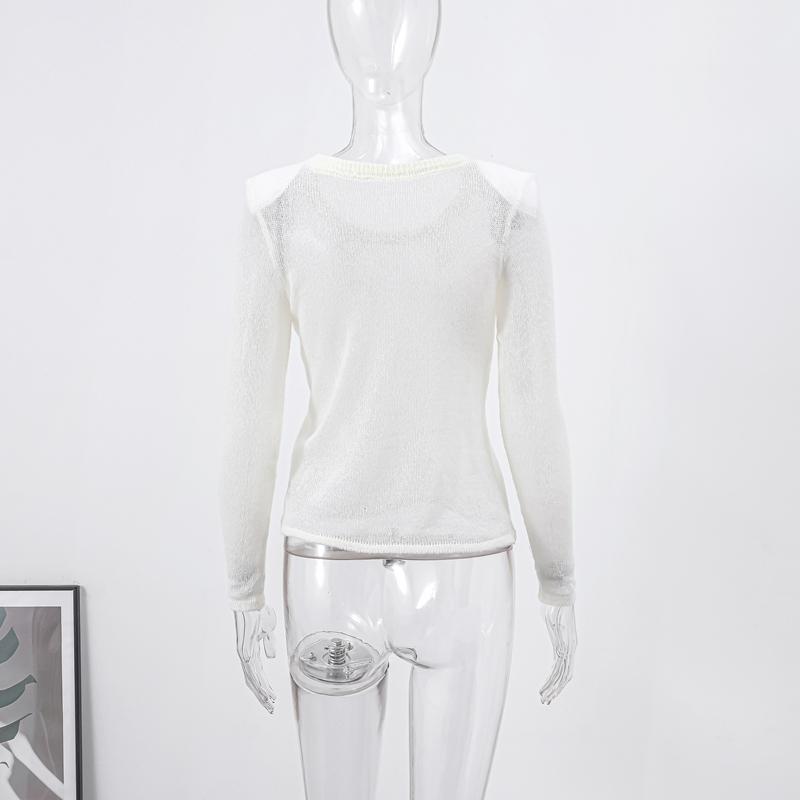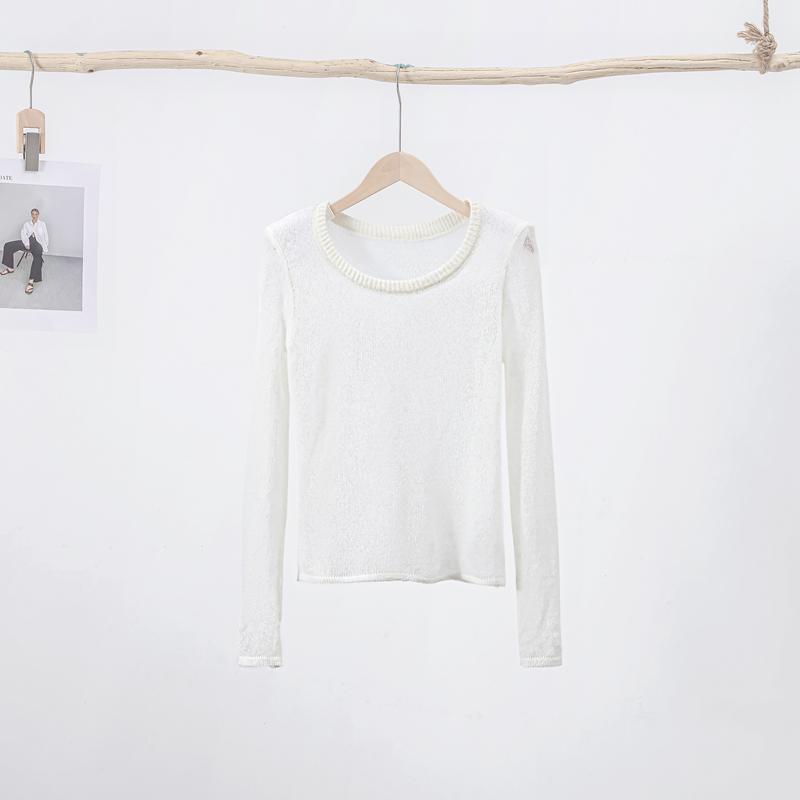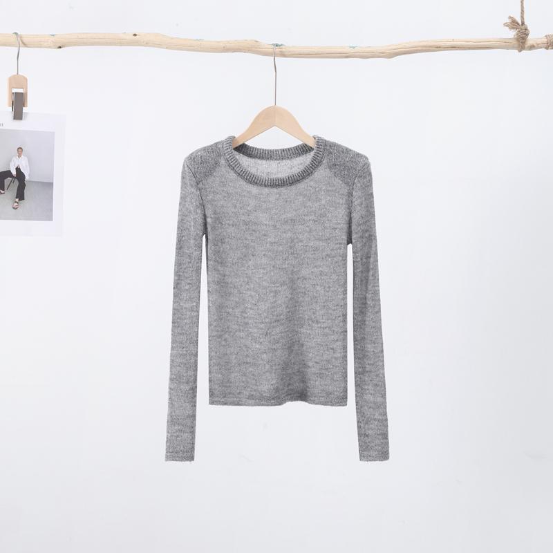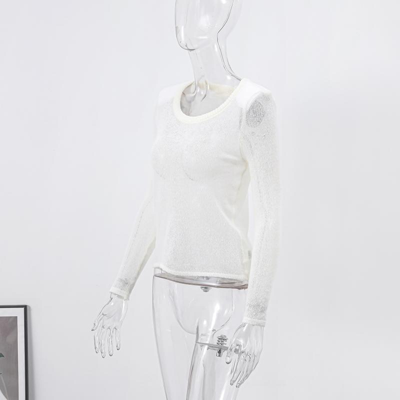 Прозрачный трикотажный сплошной женский свитер с круглым вырезом и длинным рукавом, тонкий перспективный женский свитер, весенний элегантный трикотаж для леди