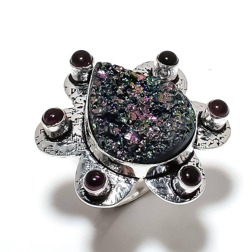 Натуральный титановый друз, аметистовый драгоценный камень, кольцо из стерлингового серебра 925 пробы, размер 8 V7Y44 — купить товар онлайн с бесплатной доставкой по всему миру!