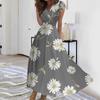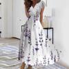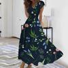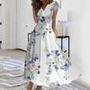 Женское длинное повседневное платье. Летнее платье с короткими рукавами и v-образным вырезом на талии с принтом.