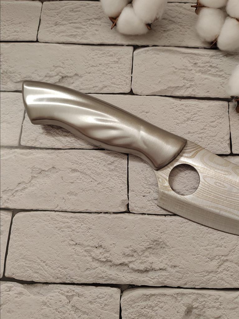 Кухонный нож с чехлом Сразу буду рекомендовать, нож шикарного качества, очень острый. Выполнен из высококачественной стали. Приходит в коробке. Лезвие защищено. Рукоять ножа удобно лежит в руке. Заточка заводская хорошая. Нож не тяжелый. Дизайн красивый. Готовить им, резать, одно удовольствие. Плюс к ножу идет удобный чехол, в котором можно хранить или брать с собой куда-нибудь. Я осталась довольна ножом, советую!