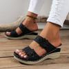Мода Новые женские простые туфли Летние ретро римские сандалии Женские повседневные босоножки на танкетке с цветочным принтом Тапочки Женские тапочки на платформе