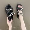 Модная обувь Низкие тапочки Мягкие летние туфли с бантом-бабочкой Женские блестящие шлепанцы Платформа Pantofle Комфорт Пляжные сандалии с кристаллами в римском стиле