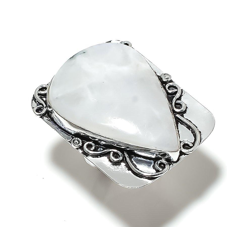 Подарочное кольцо из серебра 925 пробы с натуральным радужным лунным камнем, размер 6 J9P53