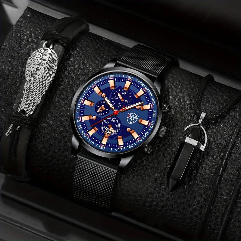 3pcs/set 1pc Fashion Men's Casual Stainless Steel Mesh Band Quartz Watch & 1pc Bracelet & 1pc Necklace — купить товар онлайн с бесплатной доставкой по всему миру!