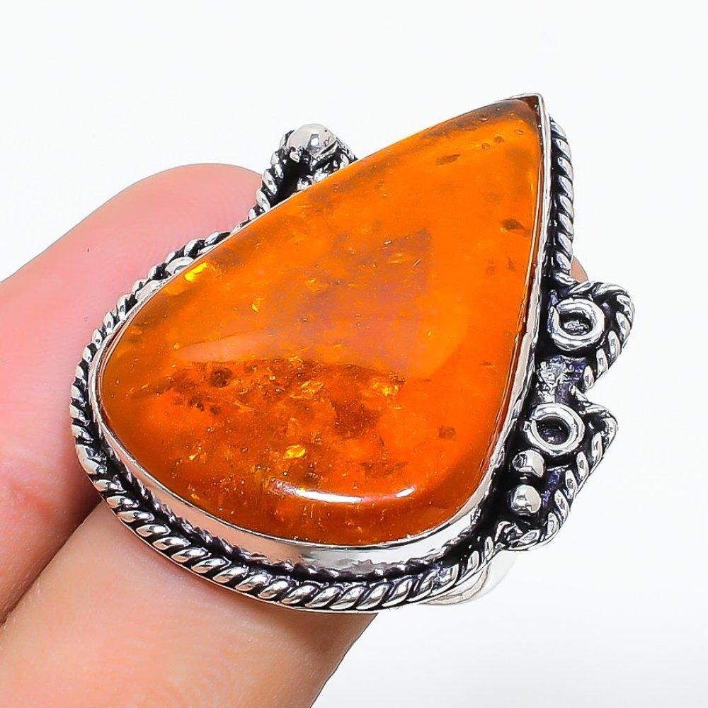 Кольцо из серебра 925 пробы с натуральным балтийским янтарем ручной работы, размер 6 S3P30